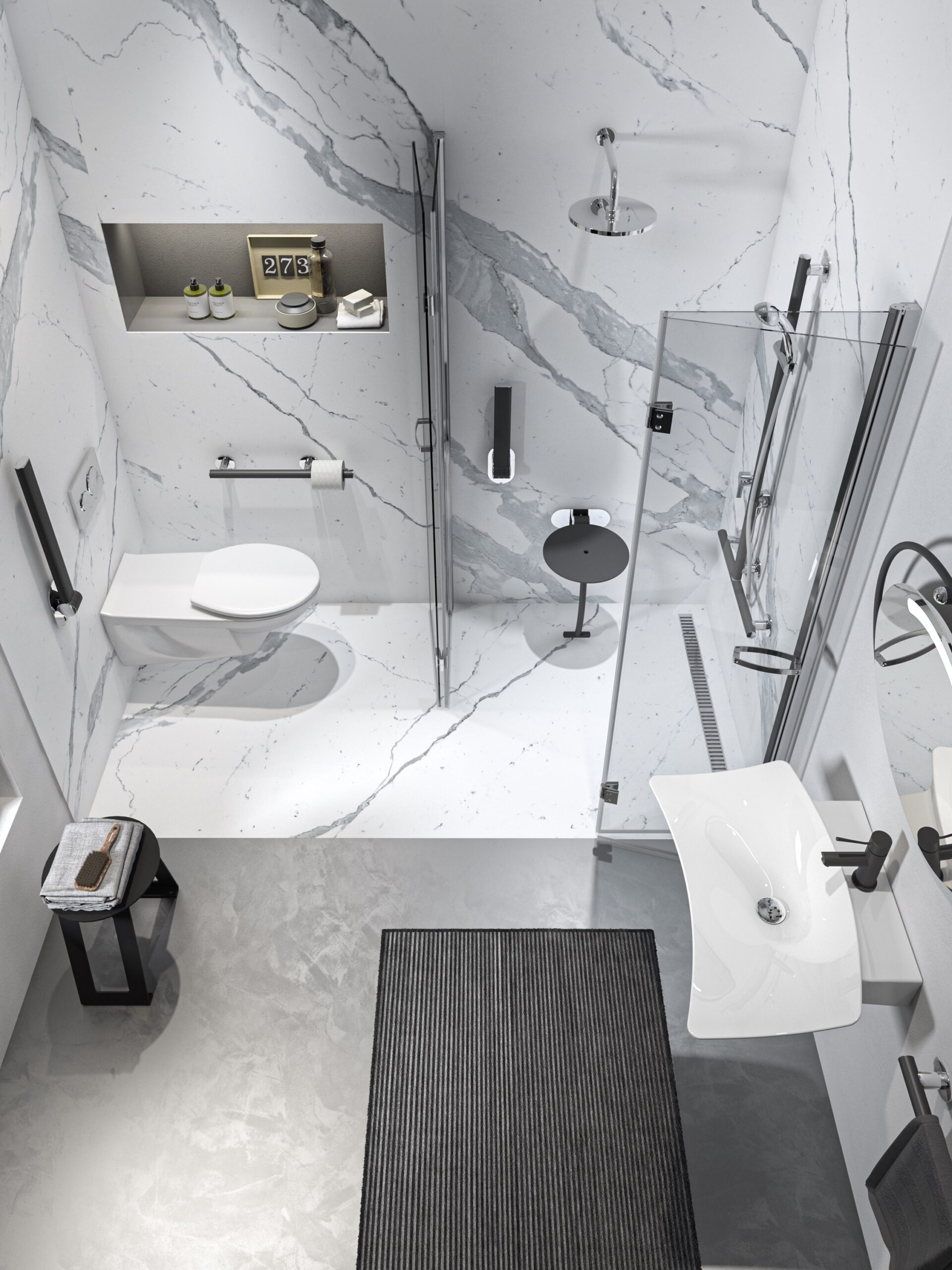 Der umfangreiche Goman-Katalog ermöglicht die Schaffung barrierefreier und sicherer Badezimmer, die alle Bedürfnisse widerspiegeln, sei es Funktionalität oder Design.