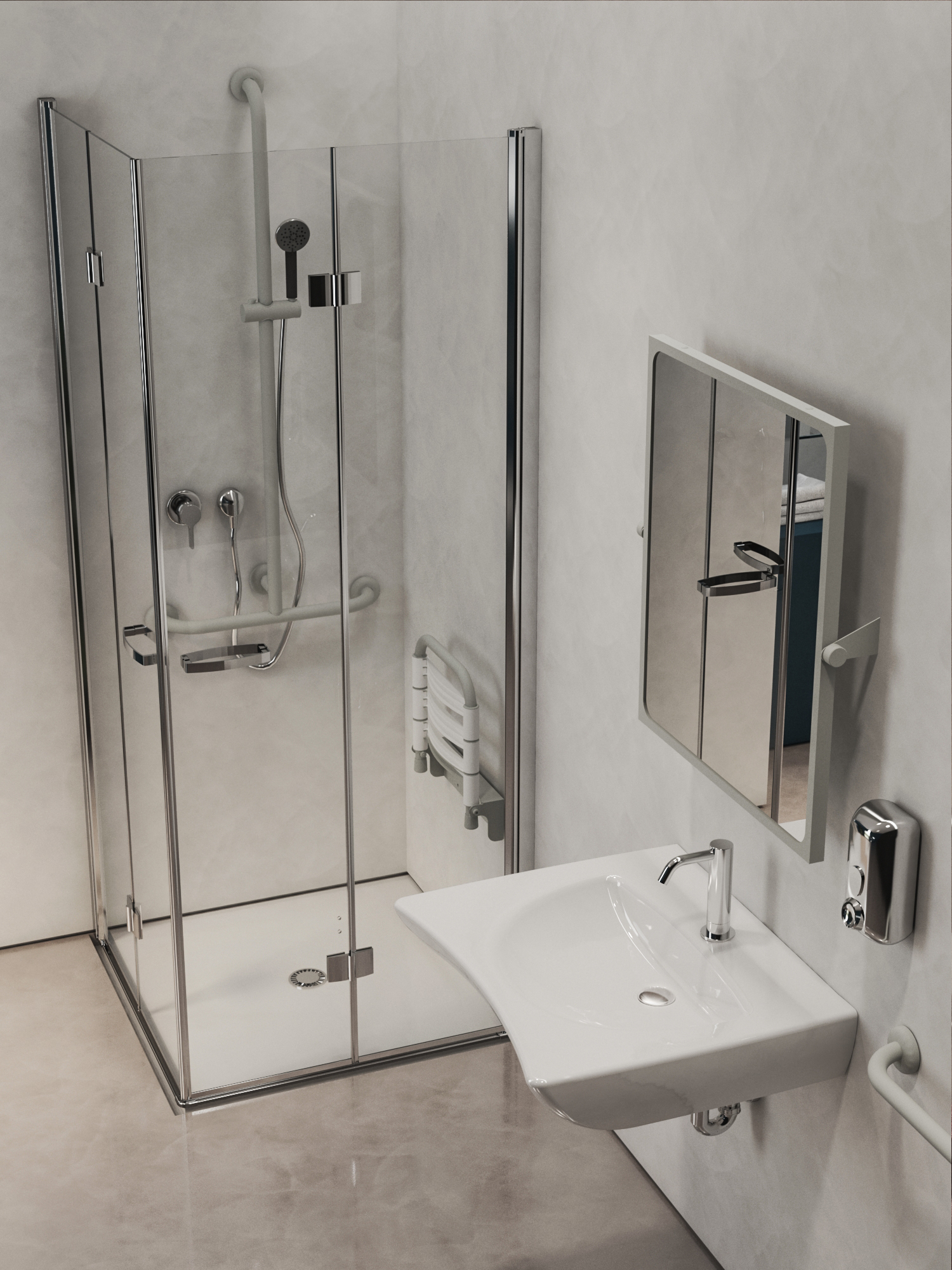 Unsere Produkte und vorgeschlagene Lösungen sind vielseitig. Das Badezimmer soll eine integrative Umgebung sein, in der sich alle wohlfühlen und Sicherheit, Komfort und Bequemlichkeit gewährleistet sind.